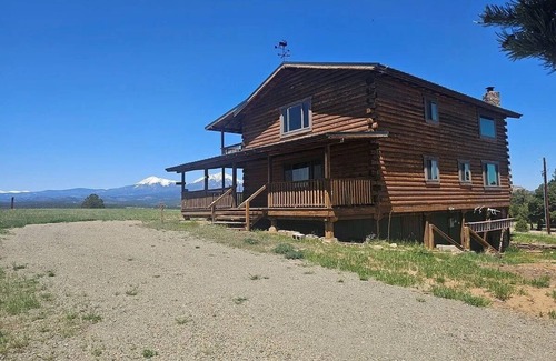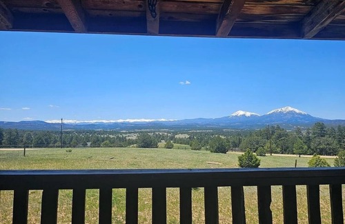 Relax with the whole family at this peaceful place to stay. Open log cabin sleeping 9 on 35 acres with spectacular views of the Spanish Peaks and Sangre de Cristo mountain range. Situated in a beautiful meadow with a backdrop of pine trees. Cozy, comfortable ... Colorado!