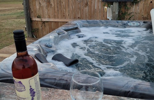 Enjoy the hot tub on the private outdoor patio with unobstructed view of the night skies.