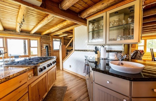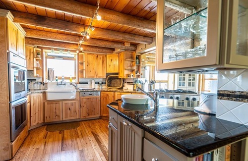Inside, find the kitchen perfect for the chef in the family! With double wall ovens, six burner range, warming drawer and a plethora of cooking gadgets - you’ll wish it was your very own! There are plenty of options where you can enjoy each meal as well. Our breakfast area includes a fireplace and picture window where you can catch stunning sunrises/sunsets over Gore Pass, the living room has plenty of couch seating and fireplace, or in the dining room where there is a large 6 person dining table. Sleep easy on our extremely comfortable beds and hand selected pillows. Fitness freak? We have a Peloton bike available for your personal use (can’t believe it’s unbeatable view either).