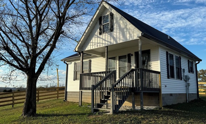 Experience Munfordville and surrounding attractions like a local in this adorable 1-bedroom cabin with a loft. Relax in the cozy living room or unwind in the queen sized bed after a day of exploring cave country. With many amenities like WiFi, and AC, guests can stay connected and comfortable throughout their stay. Other accommodations include a closet, full sized mirror, TV and blackout curtains in the bedroom. A living room area with a comfortable full size pull out sofa bed, oversized recliner and tv. The loft has two twin beds with an additional window AC. With a kitchen/ dining area complete with a stove, refrigerator, microwave, Keurig, utensils , cookware and more. You and your group can share mealtimes together in quiet, private surroundings. Don’t forget to take a few minutes to enjoy the pastoral view from the private front porch especially at sunset. You may even catch a glimpse of deer or turkey . Our listing is located on our farm, access includes the house, surrounding yard and graveled parking area. Adjacent barns, buildings, pastures, fields, ponds, fences etc are not part of the rental. Since this a working farm, depending on the time of year, there could be hay being harvested or cattle (they are not pets!) grazing near by. We cannot accommodate RVs and campers. Thank you for checking out our listing!