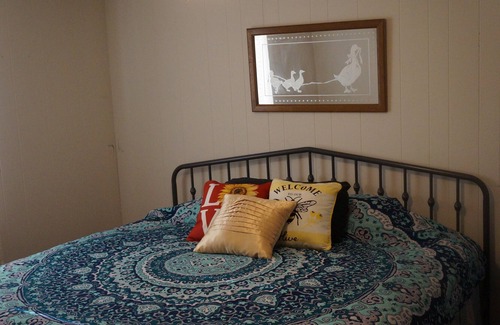 Our little home features two bedrooms with king bed in each, and has additional sleeping but not so private for two in the sunroom. It is equipped with central heat and air, and the kitchen is well furnished with microwave, range, fridge and dishwasher. Yes, there is a coffeemaker, and complimentary breakfast treats on your first morning. There is high-speed wi-fi in the house for your games or laptops, with HBO max and Paramount plus premium channels complimentary, as well as access to local channels. We have a cozy living room with flat-screen, with 28 and 32 inch flat-screens in each bedroom, and just across the threshold is a view to die for in a large glassed-in sunroom. Outdoors you will find lawn chairs, portable grill, and a restful view year round.