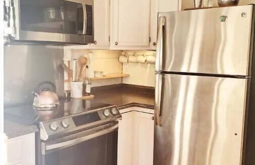 Full Kitchen is equipped with pretty much everything you might need, including plenty of dishes, pots/pans, spices, cooking oil, as well as some dry goods and condiments in the frig (please replace what you use)
