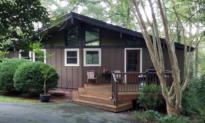 This cozy cabin that I have owned for over 20 years is a wonderful example of late-20th-century modern vacation home design. Tastefully decorated and carefully updated, you’ll be pleasantly surprised at every turn.