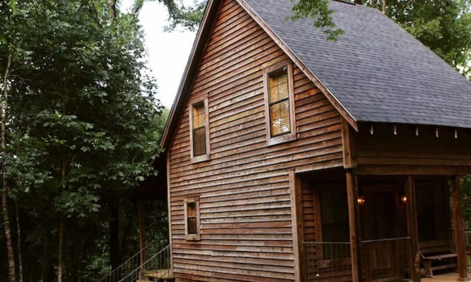 Our cabins are located 10 minutes from downtown Natchitoches, Louisiana on 30 acres of gated property on Bayou Pierre. It is quiet, secluded, and beautiful. Upstairs the cabin has a bedroom with a queen bed, a loft area with two twin bed, and also a living area, kitchen, and bathroom downstairs. Come relax on the back porch on the swing. It is equipped with Cable, WIFI, basic kitchen supplies, bedding, a grill, and more. We have trails to explore and a new floating dock to fish from!