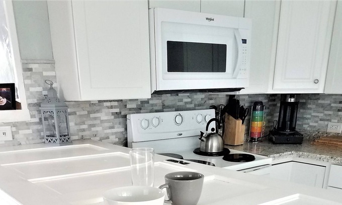 Fully amenities available for longer stays (full sized washer and dryer, dish washer, full size fridge and stove.) Grocery delivery available.