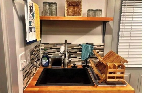 The cozy apartment is nestled in a completely modern basement apartment with all the amenities. It is on the historic square in Newnan and walking distance to everything. The owners are right upstairs and I am just a phone call away. We won't be present unless needed.