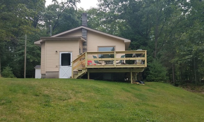 Enjoy beautiful views of Lake Michigan from this well appointed two bedroom, 1 full bath hill top cabin. Recently updated cabin sleeps 4 comfortably with two twin beds in one bedroom, a King bed in the other and a full size futon couch in the living area. There is a full kitchen, dining area and a large deck with propane grill, table and 4 stools. The beach is a wonderful place to spend the day swimming, kayaking or having a bonfire. Close to State parks, boat launches, forest and a lighthouse. Great location for day trips to Marquette, Munising, Escanaba or Manistique.