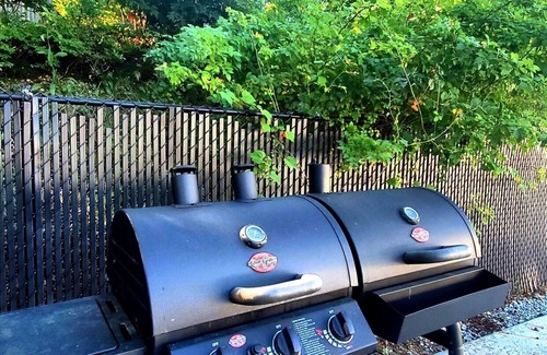 The fenced in back yard invites you to swim, lounge, and relax every minute of your stay! The heated pool is open from Memorial Day to October (New England weather permitting). Grab some pool noodles and floats from the pool house for the kids and throw some steak on the 2-in-1 charcoal/propane BBQ grill. In the evening, gaze at the stars while you relax with your family by the fire pit.