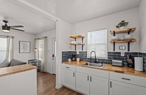 Experience the ultimate in modern living with this newly updated 1 bed, 1 bath Casita. Located in a peaceful neighborhood just a short walk from the University of Arizona's football stadium, this home offers convenience and comfort. The duplex features a sleek and modern design with all the amenities you need. Relax in the spacious living room after a long day or whip up a delicious meal in the updated kitchen. With private parking included, you won't have to worry about finding a parking spot.