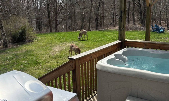 Outside, the house also has a wrap-around deck with hot tub, dining table/ umbrella and large grill with propane provided and a fire pit with Adirondack chairs to relax and enjoy the natural setting in the back yard.