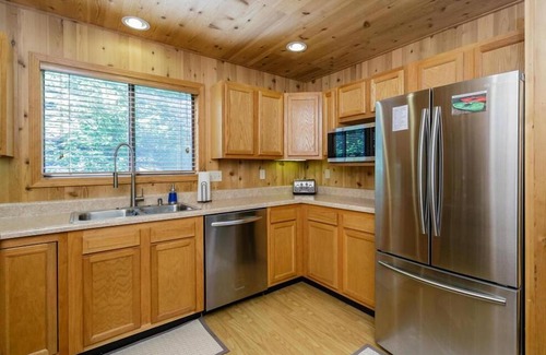 - A fully equipped kitchen with stainless steel appliances on the main level for easy meal preparation. There is a dining area for family dinners as well.