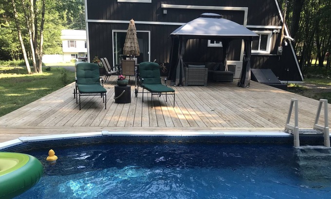 Visiting Poconos , Cozy Chalet is a perfect place. In a heart of Mt Pocono near Kalahari, Camelback Ski, Camelbeach, Premium Outlets Mall, Big Pocono State Park, Barley, Creek Brewery, Pocono Raceway, Mount Airy Casino and much more...Cozy Chalet is fully renovated with hardwood floors, fully equipment kitchen, big dinning table, fire stove. Big porch is a perfect place to relax and BBQ , walking lake distance is convenient and heated pool just great for summer.