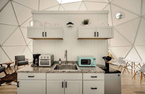 Each dome is separately outfitted with its own private outdoor space, and also includes the following in the interior, as well: