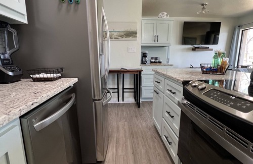 Newly remodeled kitchen with all new appliances and new laundry closet with a new LG washtower for added convenience during your stay.