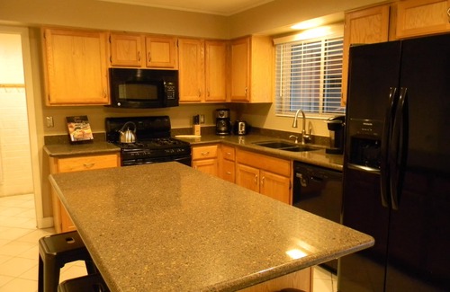 Need a home that is organized and clean when you are away? This is it. Quiet, clean, and organized with what you need. It is a 4 bedroom and 2 full bath home. There are 3 bedrooms with a Queen size bed in each and 1 bedroom with 2 Twin sized beds. All rooms have closets with hanging and shelf space for all your clothes. All beds are Revive mattresses from Living Spaces. Master bedroom has a Smart TV and headboard has smart phone charging plug ins. Livingroom with brand new sofas and a Smart TV. You can sign into your Netflix, Hulu, or other online accounts. Dining room and kitchen over look the fenced back yard and pool area. Mother nature takes care of warming up the pool, pool towels in the closet. Large family dining table for gathering. You will find games and puzzles for indoor and outdoor family fun. Coffee or breakfast on the back patio, or drinks and dinner as the sun goes down. Propane barbeque grill available for grilling. Full sized laundry room with washer, dryer, iron and iron board.