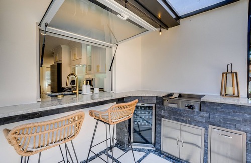 Step into the backyard oasis with a private mini beach, heated spa pool, and outdoor games. The intimate daybed outside invites moments of romance under the open sky. Inside, each room is a welcoming space, featuring a comfortable king bed, along with furnishings, a jacuzzi tub, and modern comforts. Enjoy amenities like smart home controls, an EV charging station, and a fully equipped kitchen.
