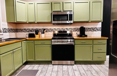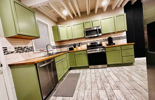 Welcome to your cozy, close-to-it-all Indy getaway! This 3-bedroom, 1.5-bath duplex sleeps 6 and offers a warm, inviting space perfect for families, business travelers, and weekend explorers. Hardwood floors throughout add charm, while the spacious living area features a comfy sectional, TV, and dining table for gathering. Need to work? You'll find two dedicated desks—one in the living area and one in the king bedroom for added convenience.