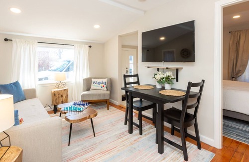 Absolutely adorable modern one bedroom cottage. Enjoy a light and bright open concept kitchen and living/dining room with room for dining at the kitchen island or separate dining table. Relax in living room with board games or movie. Enjoy a great nights sleep in the good size bedroom complete with queen size bed and sitting area. Bathroom with tiled shower. Cable, internet, parking, washer, dryer and well stocked with everything you need for your stay. Close to the commuter rail to Boston, beaches, shopping, dining, breweries, bakeries parks and Salem.
