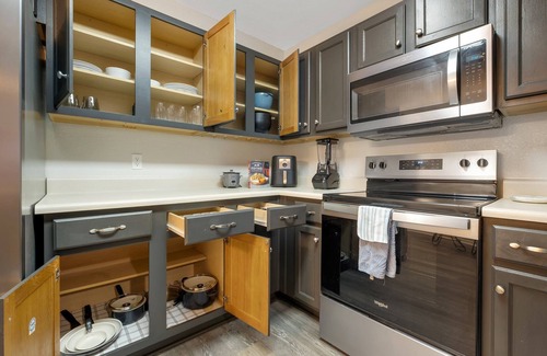 - Fully Stocked Kitchen: Equipped with all new appliances including a microwave, dishwasher, and refrigerator.
