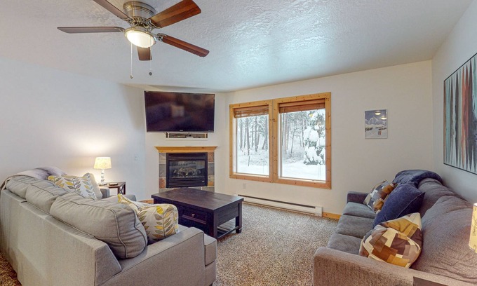 Step inside this well-appointed condo and find a comfortable retreat with modern amenities. The spacious living area features a fireplace and a TV with streaming services, while the fully equipped kitchen boasts everything you need to whip up a delicious meal for the family. Enjoy the convenience of having a washer/dryer, free WiFi, and a patio with a gas grill for al fresco dining.