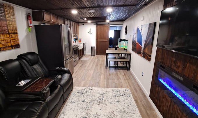 Cozy container: Unique design is located in Bastrop. Cozy container: Unique design provides accommodation, featuring Barbecue/Outdoor Cooking, Internet, Laundry, among other amenities. This House features Barbecue/Outdoor Cooking, Internet, Laundry, to make your stay a comfortable one.