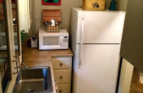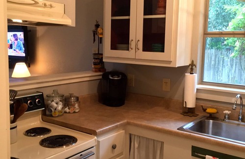Get away to the beautiful Texas Hill Country & enjoy a relaxing stay at White Oak Cottage nestled in the heart of historic Boerne, TX. Within walking distance to unique gift & antique shops, dining, and more. 1/2 Block off main street and the quaint Cibilo Creek! The downstairs apartment on the main floor features one bedroom with queen size bed and sofa bed in Living Room, full bath and a fully equipped Kitchen for guests to prepare meals or snacks if desired! If additional space is needed there are 2 other areas on the property that can be combined. First we have an upstairs guest suite which can be rented at listing #686823 which sleeps 2 people with a king size bed, separate bathroom, and mini Kitchen! Second, we have the Main Cottage at listing #695228 which is a 2 bedrooms, 1 Bathroom, full Kitchen, Living & Dining Room.