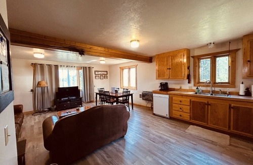 Wild West Layover is the perfect cabin for your next family getaway. Located at Last Chance in a beautiful community, this cabin offers a spacious kitchen and family room, 2 bedrooms plus sleeping area and 2 bathrooms. Be sure to get outdoors and explore the surrounding area as well. There are great areas to walk to right from the cabin. Enjoy hiking, fly fishing, and restaurants close by. The Yellowstone National Park West Entrance is a scenic 35. minute drive from the cabin.