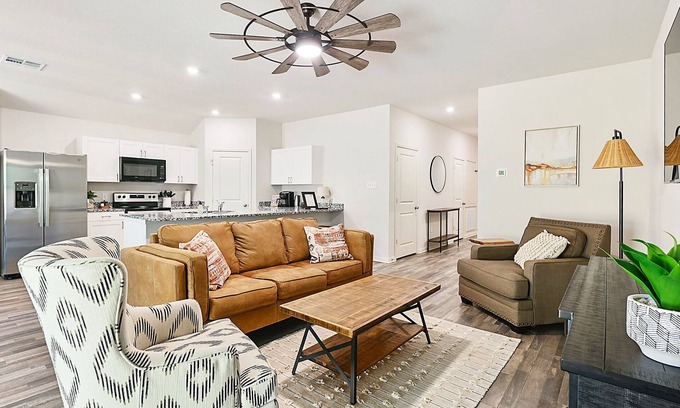 The Expo House is a new 4-bedroom, 2-bathroom home that comfortably accommodates up to 8 guests. Perfectly situated just ½ mile from the Brazos County Expo Center, 4 miles from Legends Event Center, and only 6 miles from TAMU, this home offers an unbeatable location. Whether you're here for Aggie events or a family gathering, you’ll love the convenience of this peaceful, well-connected neighborhood with minimal traffic, making all your destinations a quick and easy drive away.