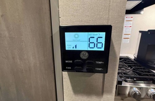 Queen bed, Booth style table converts to a 2nd bed, Fridge, 40” TV, Hot Water, Kitchenette, WiFi, Heat & AC, Private patio, Hot tub.