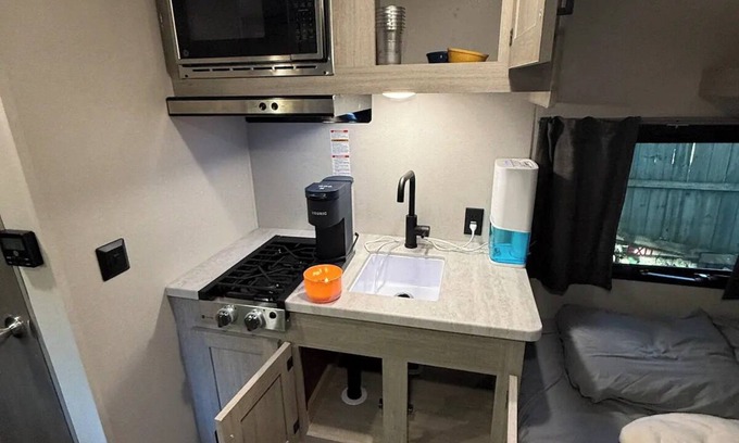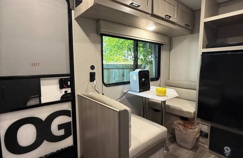Escape to our Cozy Catalina cottage for the perfect getaway! This modern space sleeps 2 with a queen bed, convertible dinette, and a full kitchen. Enjoy a 40” smart TV, Wi-Fi, and JBL Bluetooth sound system. Relax outdoors with the BBQ, hot tub, or explore local attractions. With climate control AC & Heat , full bathroom, hot water, and ample storage. Book now for an unforgettable experience!