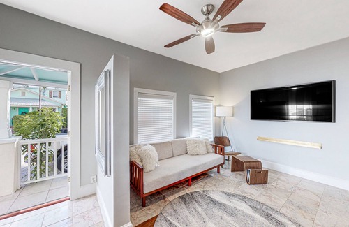 This simple, modern cottage apartment is an ideal space for a couple or a solo traveler looking to explore the heart of Key West! The contemporary living space will ensure your ease and comfort during your stay, allowing you to prepare meals in the full kitchen, watch your favorite shows and movies on the large flatscreen TV, and walk easily to the beach, restaurants and entertainment, and the very best of Old Town Key West.