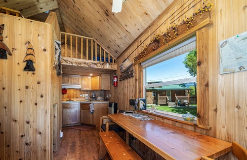 Trapper cabin features a bunk sleeping arrangement with a double-bed below and a twin above. There is a small loft with two single futon cushions as well. Bathroom has a shower and toilet. All basic cookware and utensils are provided along with a coffee maker *Note: we don't provide the coffee. Locally roasted coffee available at Tony's market and Morning Bear Coffee. This little cabin packs a lot of value in for travelers who primarily just want the basics. Clean and cozy, ready for your visit!