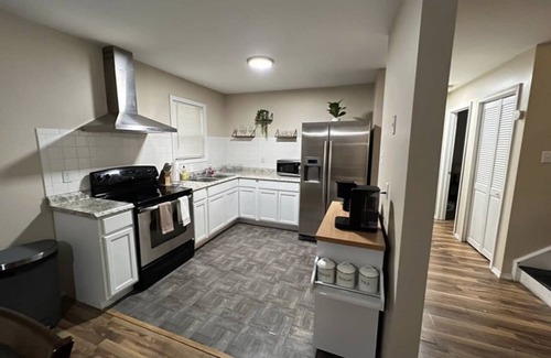 Our home offers open layout, with plenty of natural lighting, a fully stocked kitchen with a Keurig, pot, pans and seasonings.