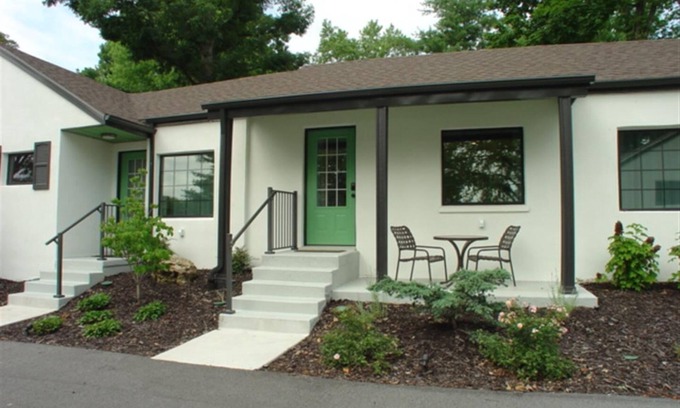 Book your next Branson getaway to this charming 1-bedroom, 1-bathroom vacation rental cottage just half a mile from the Branson Landing center. With enough space to comfortably sleep 4 guests, this quaint downtown Branson cottage offers a tastefully furnished interior, a well-equipped kitchenette, modern accents, and access to fantastic amenities like a pool and grill area.