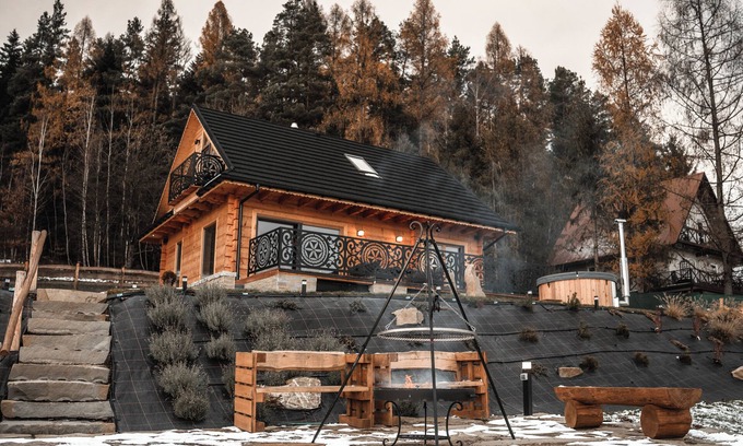 Cozy cottage in modern highland style with fireplace, hot tub and large garden is located in Makow Podhalanski. Cozy cottage in modern highland style with fireplace, hot tub and large garden provides accommodation, featuring Child Friendly, Air Conditioner, Security/Safety, among other amenities. This Cabin features Child Friendly, Air Conditioner, Security/Safety, to make your stay a comfortable one.