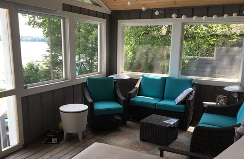 This cottage is just steps away from the lake with access to kayaks, a large screen in porch for lounging, and a firepit for bonfires. With a 100 ft dock you can swim, fish and just set out on the patio at the end of the dock (you may even hear some concerts from Interlochen Academy across the lake.
