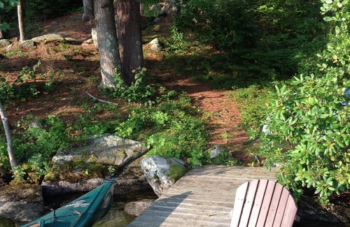 A simple but attractive cottage on beautiful Squam Lake. Located on High Haith which is an island on Squam Lake accessable by road. Located on the lake on a small, quiet, private road. This is a 3 bedroom, 1 1/2 bath home with a separate kitchen, a combined living room/ dining room and a large deck facing the lake. The living room has a full size fireplace (includes fire wood) and a screened porch.. Kitchen has a dishwasher, microwave, stove/oven, blender, coffee maker, toaster and a full supply of cooking utensils and dishes. Master bedroom has a queen size bed and private 1/2 bathroom. Two other bedrooms have two twin beds each. There is also a fold out futon which will sleep two in the living room. There is a small washer and dryer. Lake front (280 feet!) includes a full size dock which will accommodate a motor boat (not included!) and an aluminum canoe. Cottage is a 10 minute drive from Center Harbor which has most ammenities (full grocery and hardware store and liquor store as well as several good restaurants)
