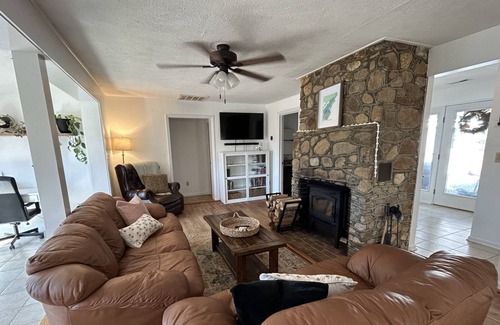 Enjoy peace and quiet along the Conway River. This relaxing getaway is about 1/4 mile off of rte 230. The cottage was an original one-room cabin with a centrally located wood stove/fireplace. It now boasts 2 bedrooms, 1 bathroom, a full kitchen, large windows and a patio/deck with river views. During the fall and winter months, you can see the sunset over the mountains of the National park.