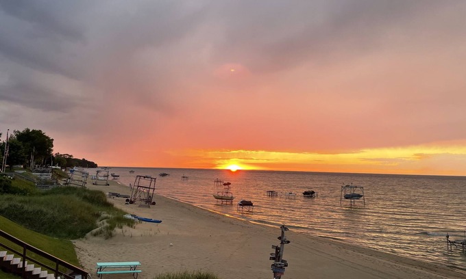 You have everything you will need for a relaxing beach vacation right here! You’ll find Lake Huron steps from the front door. Head to the beach to swim, float, relax, and while you’re there we recommend taking stroll down to the big rock! The sunsets are breathtaking! Outback there is a fire pit to roast smores and enjoy a cozy bonfire. Almost equal distances to Downtown Port Austin and Caseville which both offer great spots for food, drinks, and shopping! Check us out @crowsnestPA