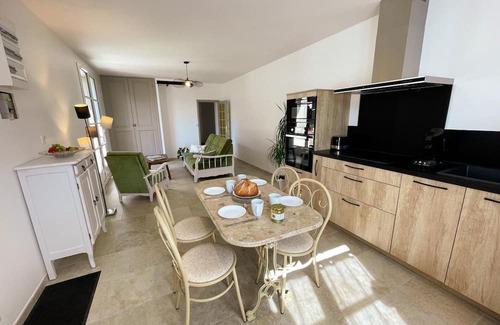 All-inclusive cottage (except tourist tax) on the ground floor. Living room with fully equipped kitchen (3 induction hobs), lounge area, TV. Separate toilet, bathroom with large shower and double sink. 1st bedroom (180x200 cm bed separable into 2 x 90x200 cm, desk-secretary), second bedroom (2 x 90x200 cm beds that can be twinned into a 180x200 cm bed). WIFI. Heating included in the rates. Wooded and fully enclosed garden of 1400 m² (private parking possible for 4 cars). Terrace, gas plancha. Train station 600 m walk. Close to all services and local shops. Bicycle/motorcycle shelter on request (lockable). Non-smoking accommodation. On the Amboise - Pocé-sur-Cisse road, a charming village dear to a famous singer, your cottage is a cozy nest where you can stay for a weekend or a week, between the Loire Valley castles and Beauval Zoo. Whether you come with your children or are two couples, you will find a comfortable vacation spot and enjoy the vast wooded garden, perfect for relaxing or outdoor games. Supermarket in the immediate vicinity, numerous shops and services also nearby, you will also have the chance to be at the gates of the magnificent city of Amboise and its castle, its pleasant banks of the Loire, its market renowned throughout the region. Also discover the Clos Lucé, the Loire à Vélo route, Chenonceaux, Chaumont-sur-Loire and its International Garden Festival, Villandry. Meetings with winemakers, walks in the heart of nature, festivals and festivals will amaze you. Touraine welcomes you in all its glory...