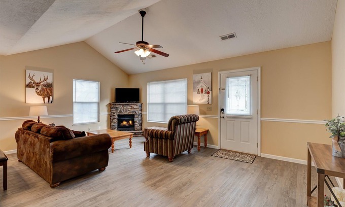 Your family will be close to everything when you stay at this centrally-located home. Located right in the heart of Pigeon Forge and just a 10 minute walk to the tram. Close to everything, yet in a quiet neighborhood. Relax in the private hot tub year round or swim in the seasonal pool (typically open Memorial Day thru Labor Day)