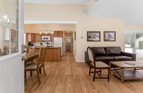 Lucky Duck Cottage offers a spacious 1,600 sq. ft. retreat, perfect for a cozy yet comfortable stay. With 3 bedrooms and 3.5 baths, this thoughtfully designed home provides plenty of space to relax and unwind. The open floor plan seamlessly connects the kitchen, dining, and living areas, making it easy to gather with family and friends. Floor-to-ceiling picture windows flood the space with natural light, offering beautiful views of the backyard.