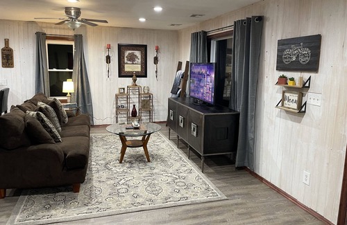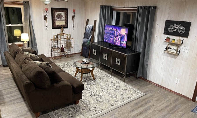 Come stay at this luxurious 2 bed, 2 bath cabin in the woods. Within 30 minutes of two major medical facilities, this cozy barndominium offers convenience and comfort for all medical workers needing a good nights rest. Situated just minutes from Lake Fort Gibson, this cozy cabin doubles as a fun lakehouse retreat. Fully furnished with all of your basic amenities youre sure to have a comfortable stay in this Oklahoma hideaway.