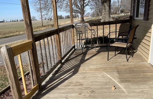 A country home, but still minutes away from town. Large breakfast selection. Barbecue grill and a hot meal on your first night when you arrive. Beautiful fireplace, all newly remodeled. This homes sits on almost an acre.
