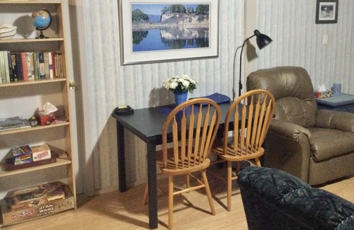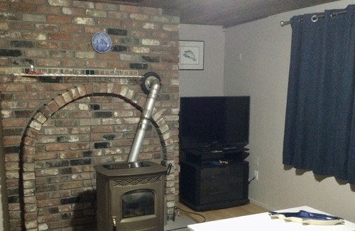 Cozy air conditioned basement suite with private entrance and covered parking. Couch and Recliner in living room, with pellet stove, and TV. Full kitchen with washer and dryer. Easy access to Island Highway. Close to Malls, Forest Discovery Center with Steam Locomotives, Hand of Man museum, and The Raptors Nature conservatory. Back yard with shade has picnic table and lounging chairs to relax after a day of touring.