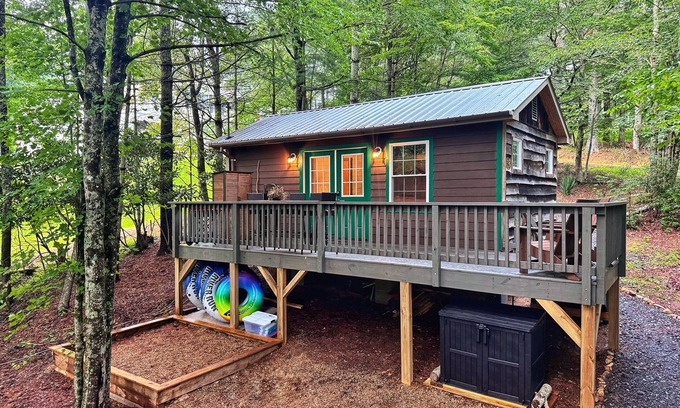 A rustic tiny cabin with easy road access, just a short walk from shared New River access and a beautiful waterfall! 10 minutes to both West Jefferson and the Blue Ridge Parkway. Let the nature of Appalachia inspire you, like it did for Teddy Roosevelt in the 1910s at Pine Knot. The Calm Down Cabin is perfect for 1-2 people and can sleep 4 with a comfy pull out bed. River tubes are included on the property. Zaloo’s Canoes is a 4 minute drive!