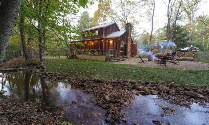 Explore the over 5 acres of land included with our Private cabin. Enjoy the sounds and sights of Powdermill Run Creek while nestled up on the patio or screened in porch. Take in the 2,200 acres of woodlands, streams, fields, ponds while you hike on the trails of Powdermill Nature Reserve. Have a fire in the smokeless stove next to the creek or cook a woodfire pizza in the stone oven. Bring your tenants, outdoor games and any other outdoor activities to make your stay special.
