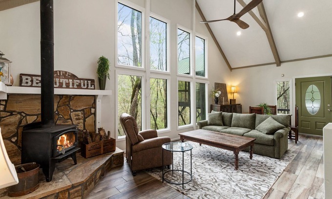 Welcome to Yellow Creek Cottage, our newly renovated retreat in the heart of nature nestled on noisy Yellow Creek. Enjoy views from the large floor to ceiling windows in the living room. Wake up to stunning views of the surrounding forest & fall asleep to the soothing sounds of rushing Yellow Creek. Equipped with all the necessary amenities including a treehouse, private deck, wood burning stove, & fire pit.