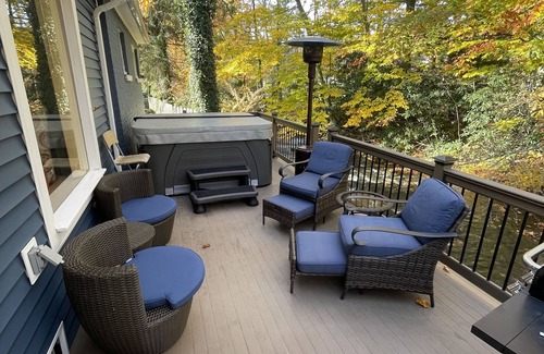 Best-rates for the Cozy Creekside Home starts from $283 per night with includes Guest Services, Laundry, Internet, Security/Safety, Wellness Facilities, Barbecue/Outdoor Cooking, Hot Tub, Air Conditioner, Parking, TV, Balcony/Terrace, Bedding/Linens, Entertainment, Child Friendly, Kitchen, Fireplace/Heating StayAndPlay offers fully equipped golf villas, golf hotels, golf resorts, luxury golf cabins, and exclusive golf retreats, making it easier than ever to find your perfect golf escape — ideal for families, peaceful getaways, or pet-friendly retreats with the whole crew.