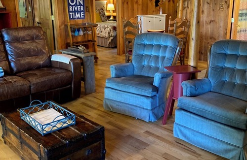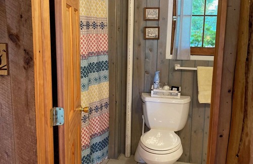 The main cabin has a 30,000 BTU propane wall heater and large fireplace for heating during the cooler season, and a large window A/C unit to keep guests comfortably cool during the hotter season.